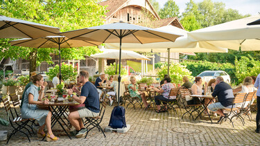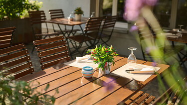 An Sommertagen lädt unser Garten im Landhausstil zum Verweilen ein. Die Bäume spenden wohltuenden Schatten in einer lebendigen Umgebung mit 100 Sitzplätzen.